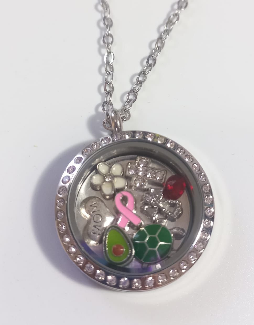 Relicario Locket con piedras Plateado Medida: 30mm $969